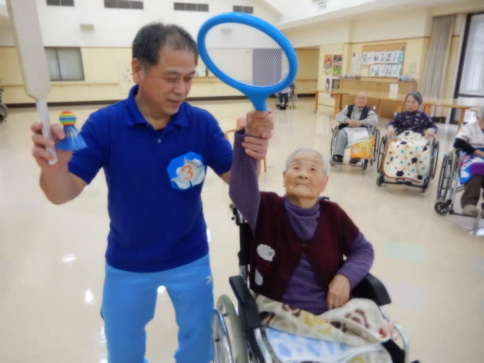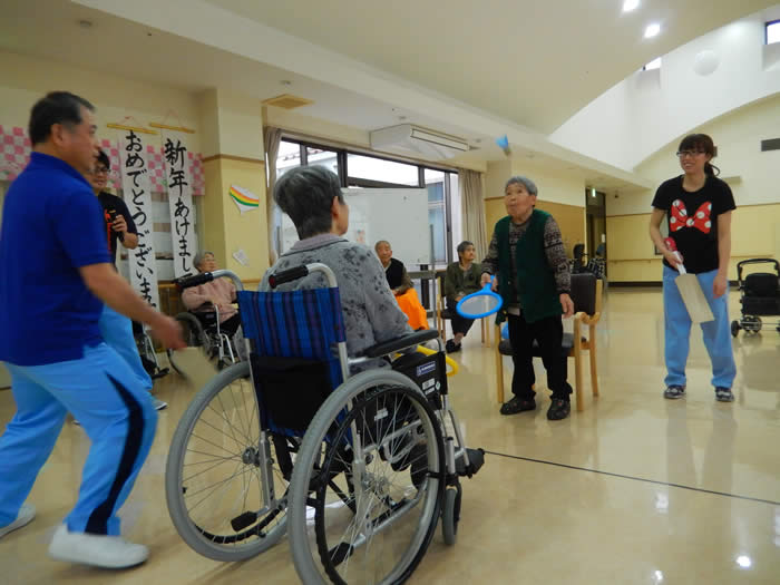 羽子板の代わりに バドミントンを行いました。